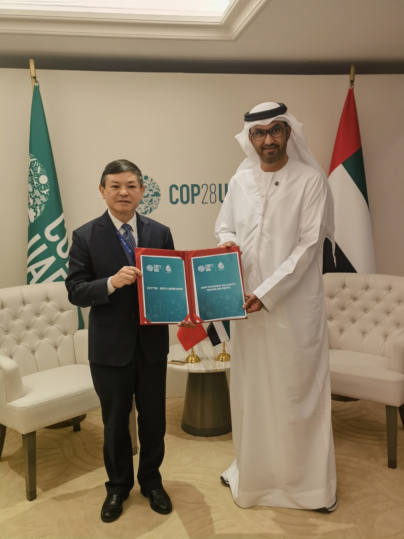 11月30日,《聯(lián)合國氣候變化框架公約》第二十八次締約方大會(huì)(COP28)“中國角”開幕式暨“生態(tài)文明與美麗中國實(shí)踐”邊會(huì)在阿聯(lián)酋迪拜舉行。生態(tài)環(huán)境部部長黃潤秋出席開幕式及邊會(huì)并致辭。中國氣候變化事務(wù)特使解振華,外交部原副部長、聯(lián)合國前副秘書長劉振民,COP28主席蘇爾坦等國內(nèi)外嘉賓出席。開幕式由中國代表團(tuán)團(tuán)長、生態(tài)環(huán)境部副部長趙英民主持。